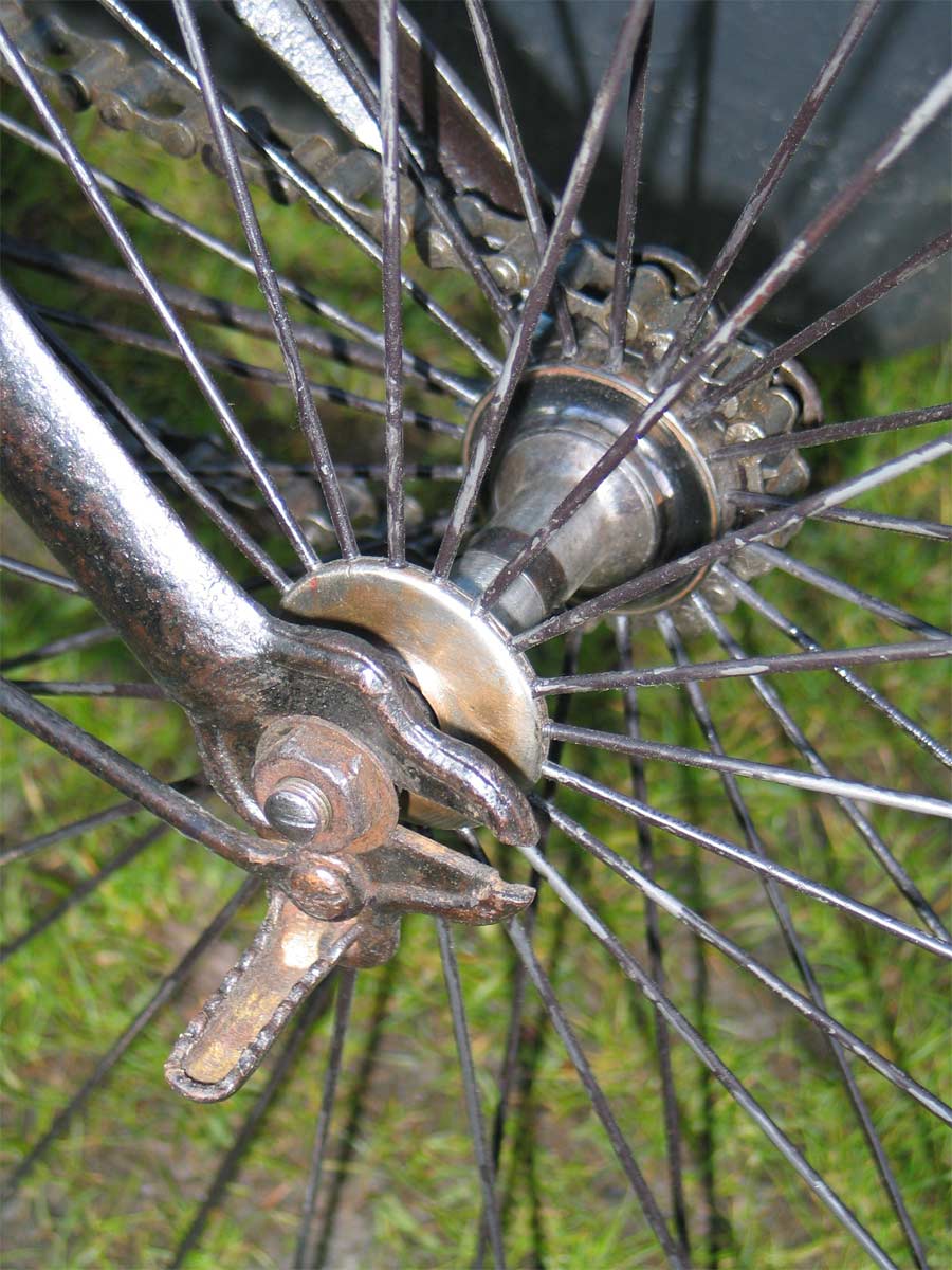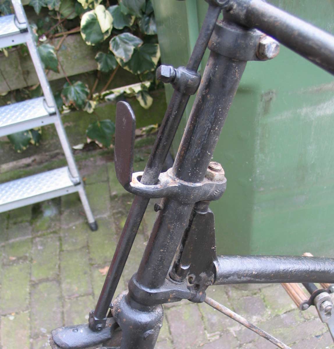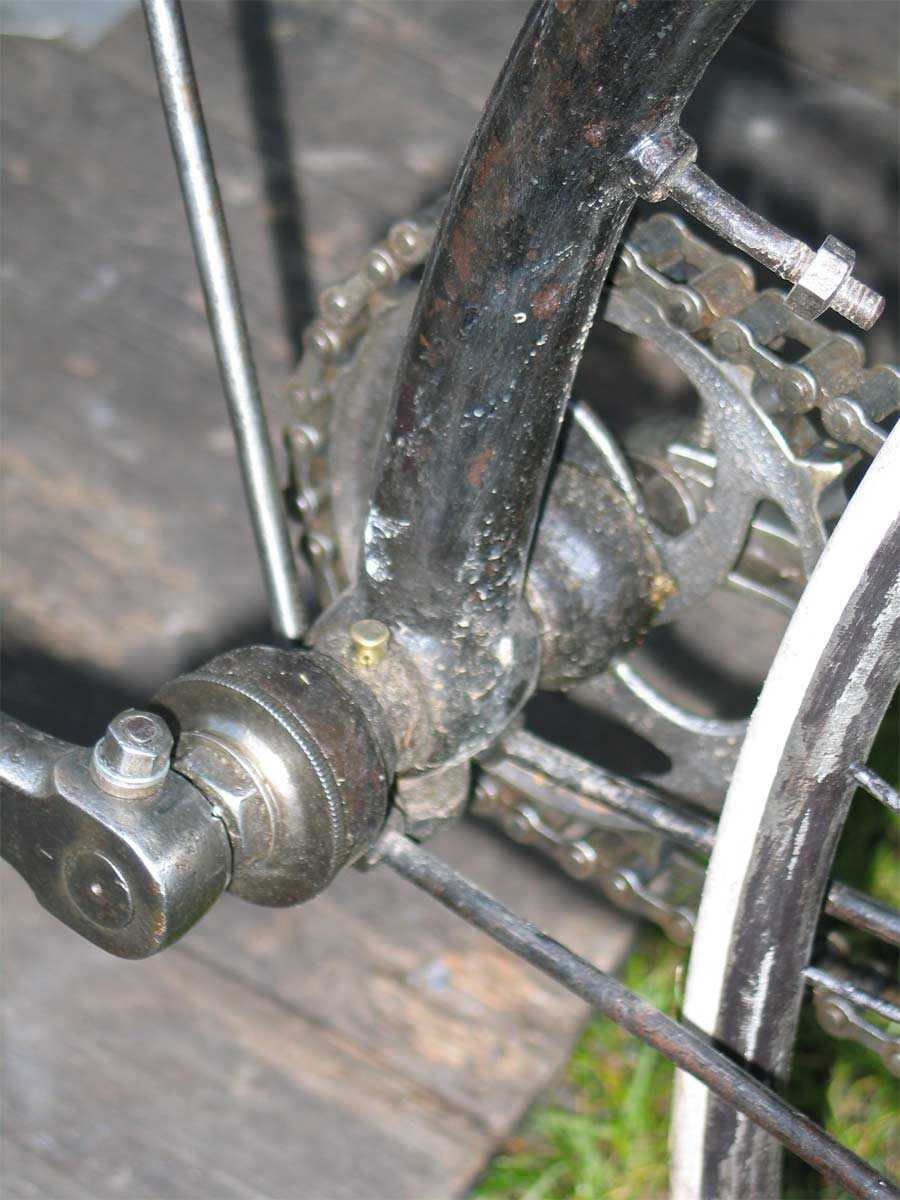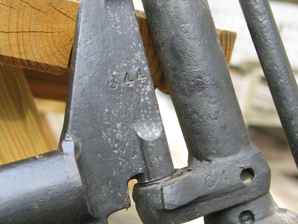 A few years ago I bought a cross frame in France, quite a heavy one. In the meantime I found out that there is a French collector who owns exactly the same model: that’s why I guessed it was produced in France. In this chapter you will find pictures of his bike as well as mine, they are different in minor details. My bike has serial number 644 which is inscripted in many parts,
